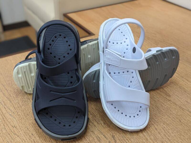 通気性が良いだけではなく、穴から水や砂が排出されるので海や川、砂浜などサンダルの中に水や砂がたまりにくいので快適に履けるんです