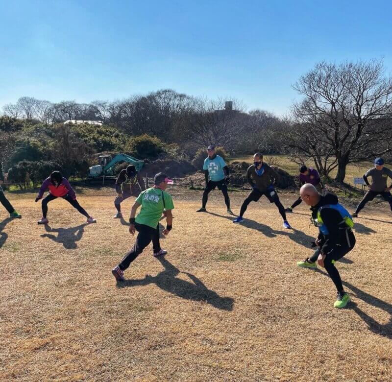 まずは公園についてからランニング前の準備運動。