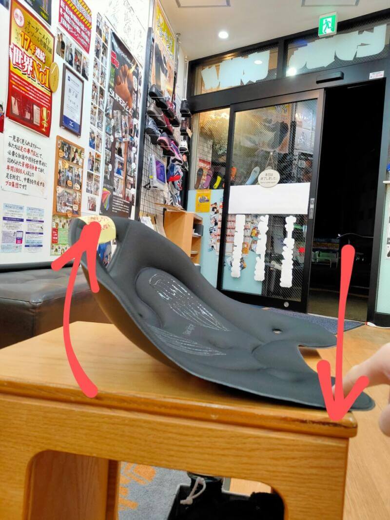 これに座るわけですが、通常そのまま椅子の上に置くと写真のように矢印部分のような隙間が出来ているんですね。