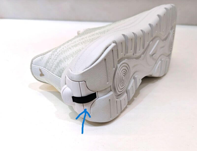 ↑カカトにダイヤルがついていて、これを回すことによって靴紐が締まるようになっているのです!!