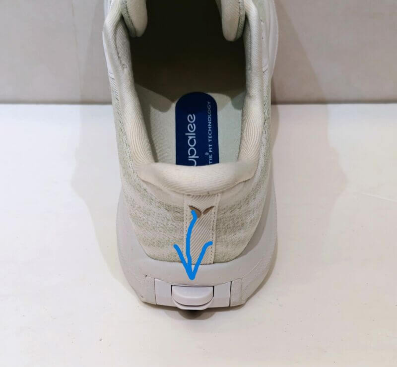 かかと部分が固くできていて靴ベラいらずは他社のシューズと一緒ですが、秘密はカカトにあります。