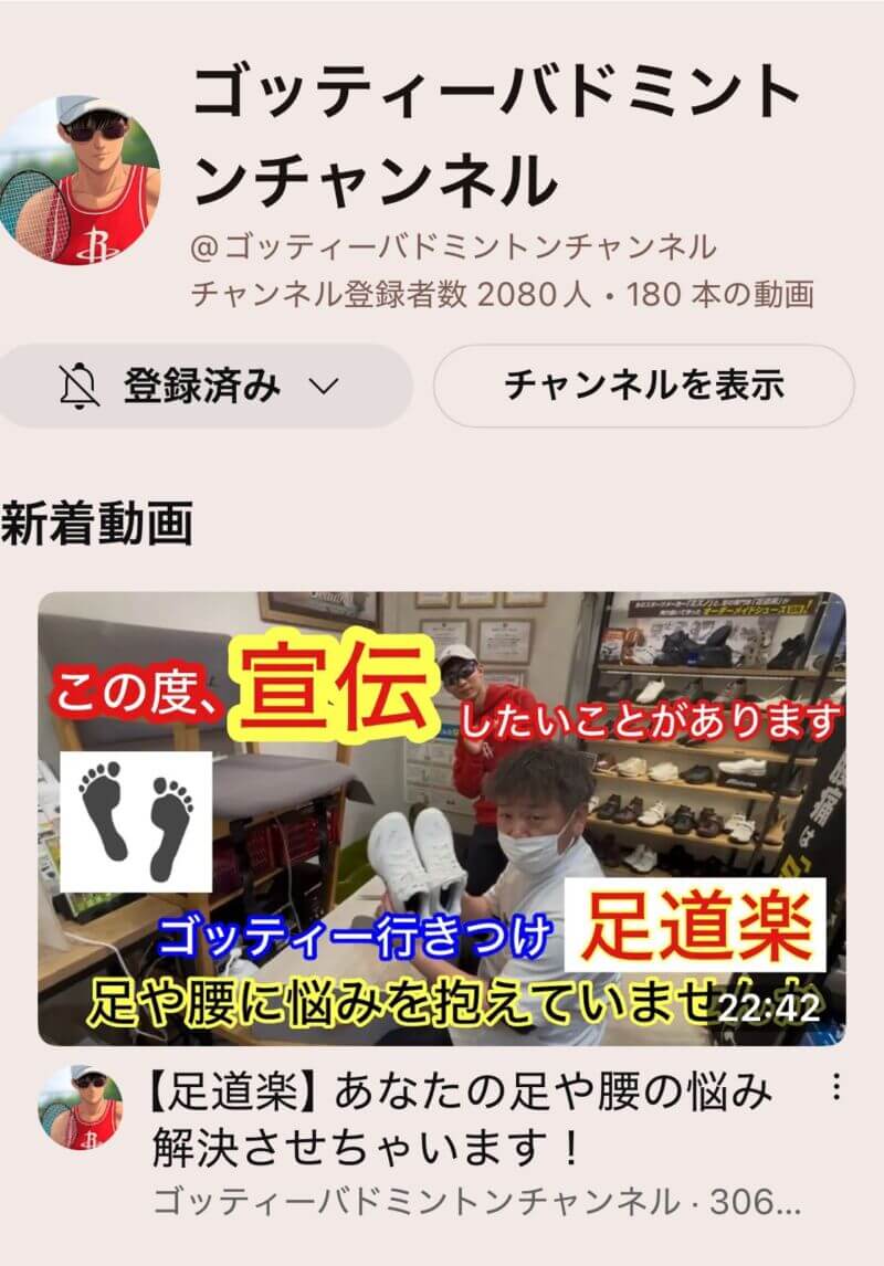 YouTubeゴッティーバドミントンチャンネルで紹介されました!