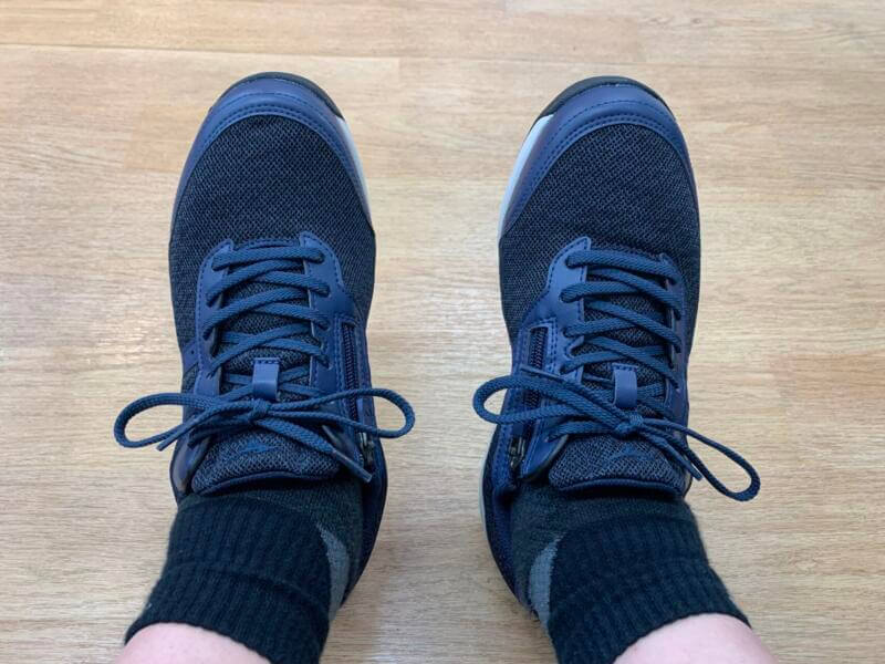 今回はネイビーカラーの25.0cm横幅4Eを履いてみます。