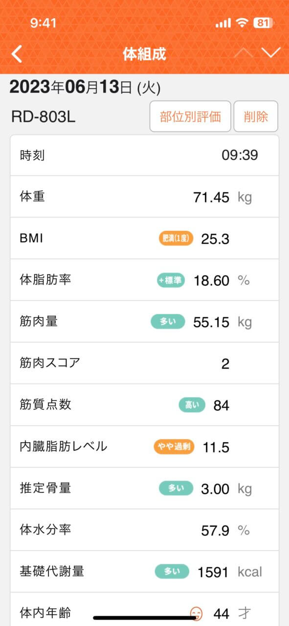 なにより、50代後半の私でも半年で筋肉が5KG以上増やせたのにはビックリです。現在、タニタの体組成計での判定では、私の体内年齢は44才。実年齢より干支一回り以上若いのは、嬉しいですね。